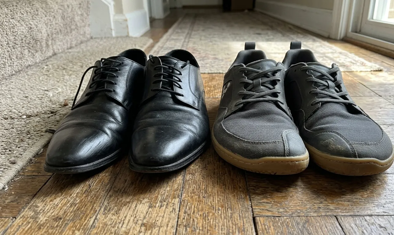 Dabiskās pastaigu kopienas bieži vien ir noderīgas, lai pārietu uz basām kājām. Ideja ir meklēt modeļus, kuros priekškāja ir ievērojami platāka par papēža zonu. Izmēģināju šo pieeju ikdienā un biju patīkami pārsteigta par rezultātiem.