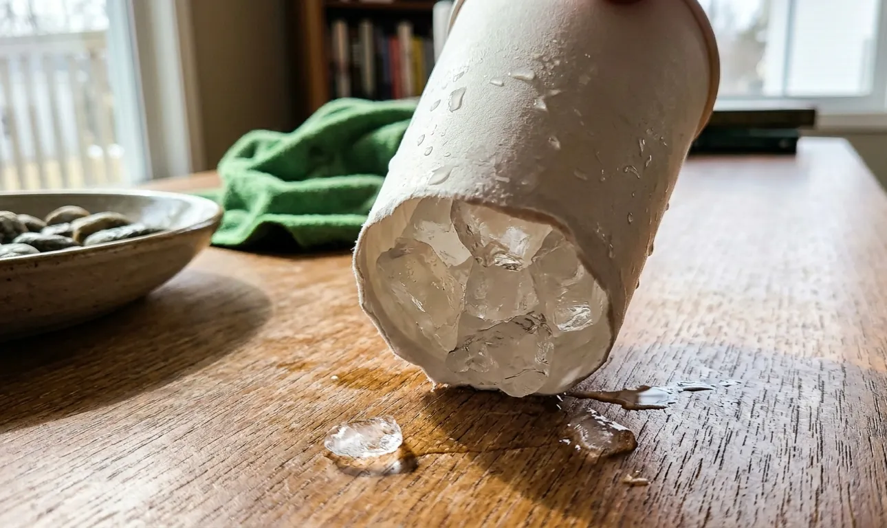 Daudzi izmanto papīra glāzi ar sasalušu ūdeni – tās malas ir viegli noplēst, jo ledus kūst, un pirksti nemaz nesalst.