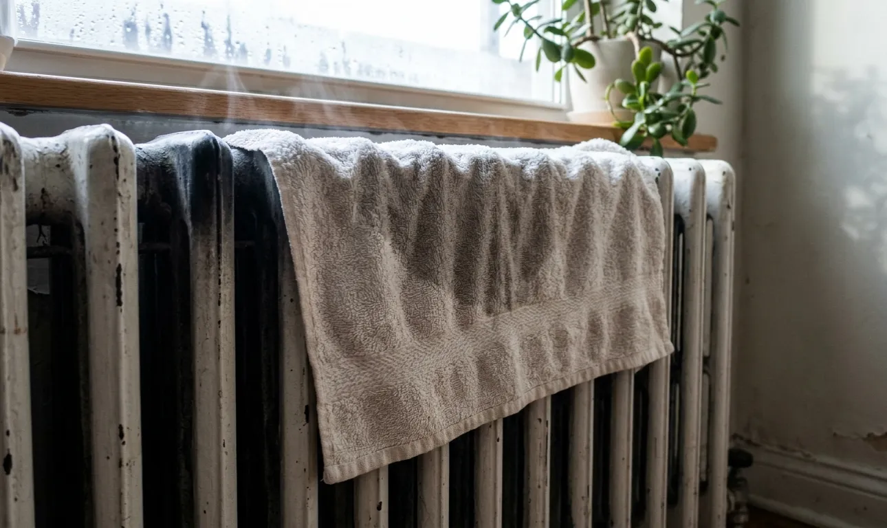 Mana personīgā pieredze liecina, ka parasts mitrs frotē dvielis, kas pirms gulētiešanas uzmests uz karsta radiatora, lieliski glābj situāciju līdz rītam.