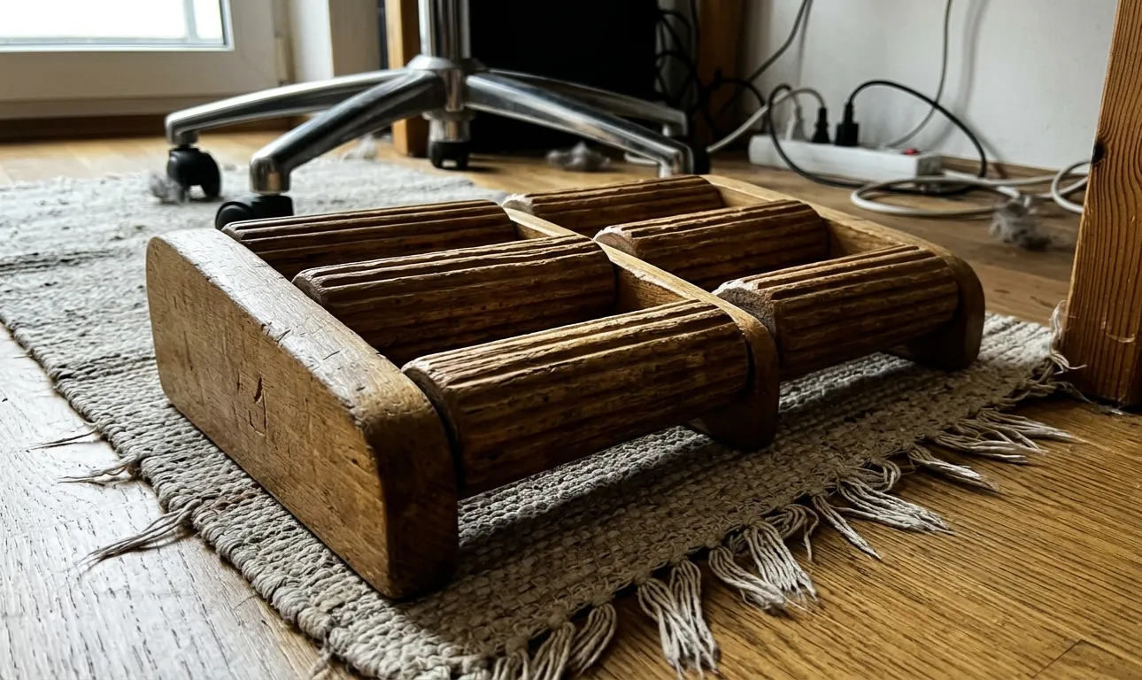 Mēģināju zem galda ripināt parasto zobaino pēdu rullīti, un tas lieliski stimulēja mazos kapilārus.
