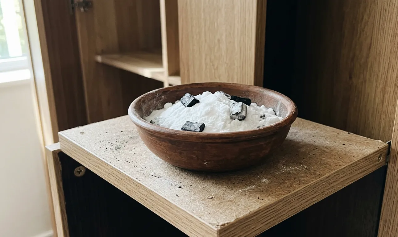 Sausās cepamās sodas apakštasīšu novietošana istabas stūros un skapju iekšpusē