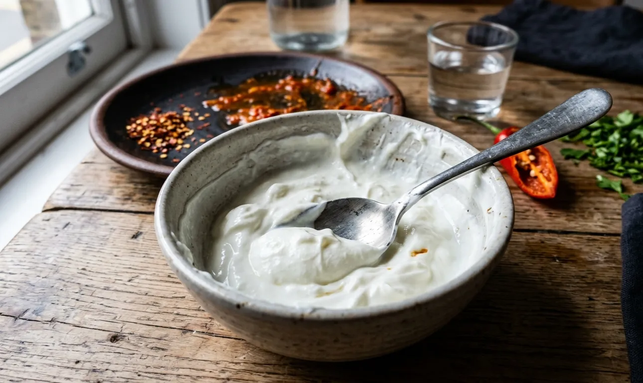 Mana personīgā noslēpuma nianse: ja pie rokas nav piena produktu, ļoti palīdz citrona šķēle, kas pārkaisīta ar cukuru, jo skābums un saldums pārtrauc receptoru šoku.