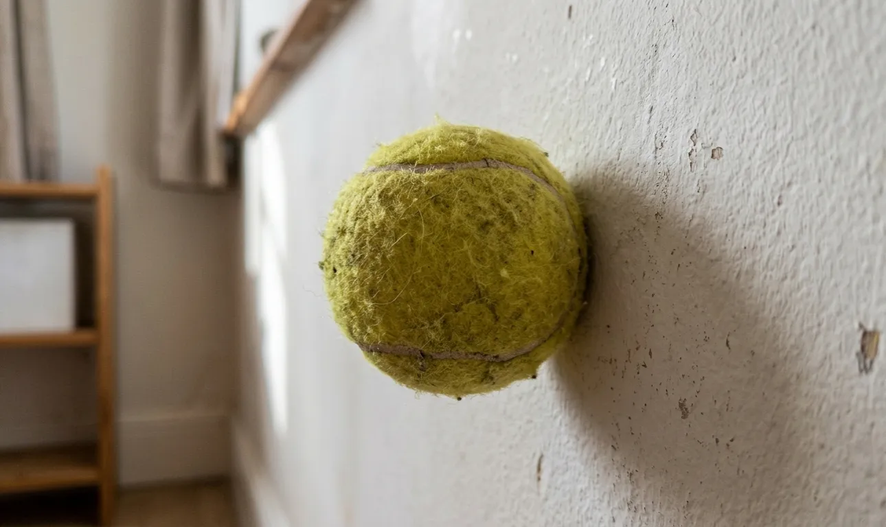 Izmantojot biezu tenisa bumbiņu, pats izritiniet problēmzonu pret sienu